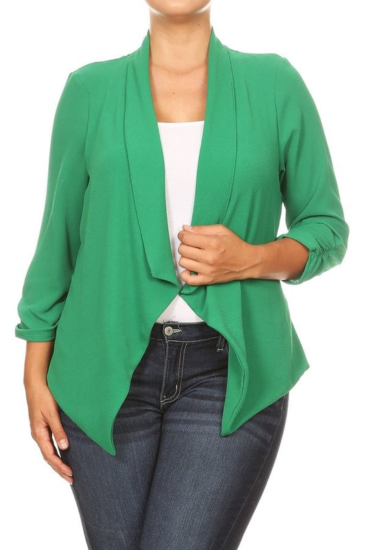 Plus Size Solid Waist Length Cardigan