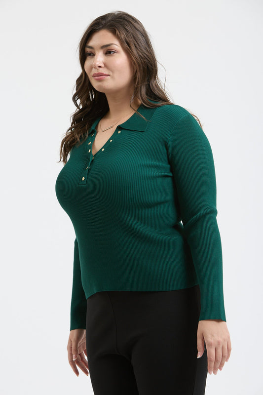 Hunter Green Buttoned Collared Top