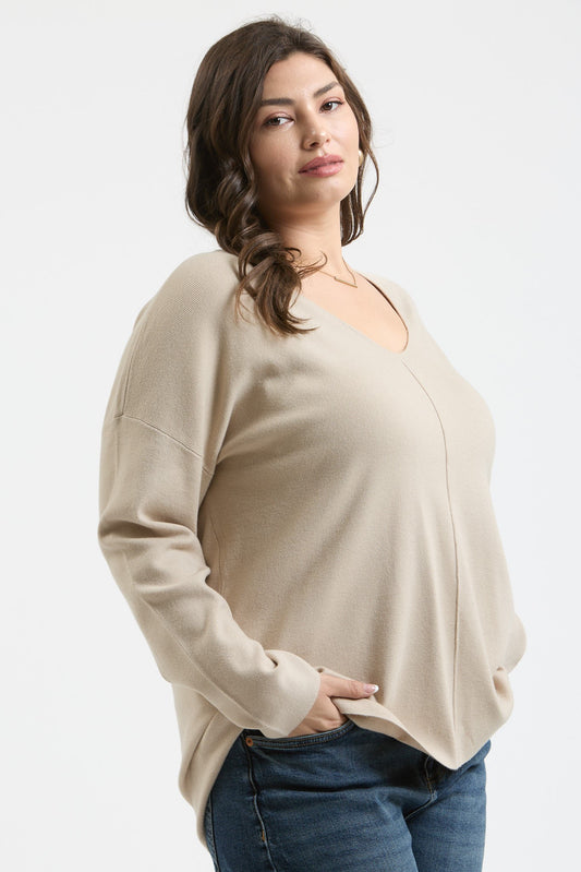 Oatmeal V-Neck Front Seam Sweater