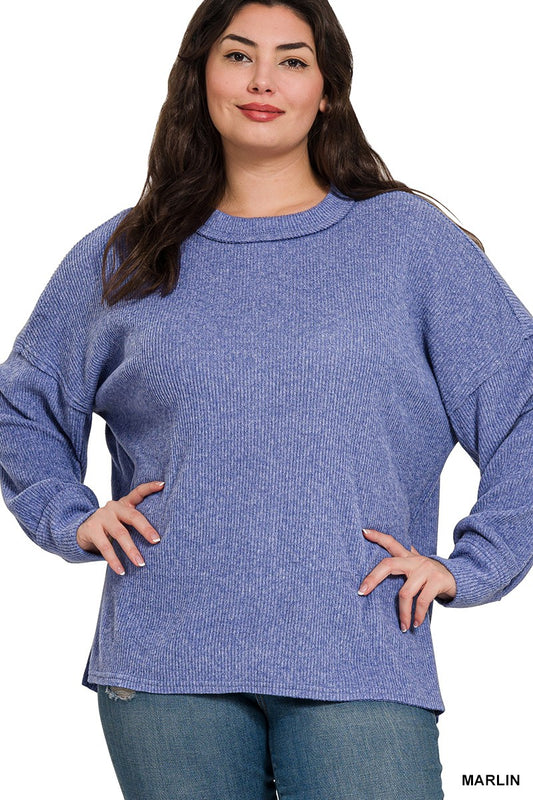 Blue Ribbed Hacci Sweater