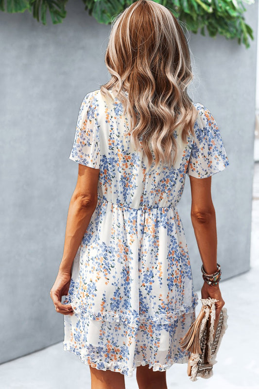 White with Royal Blue Floral Print Dress