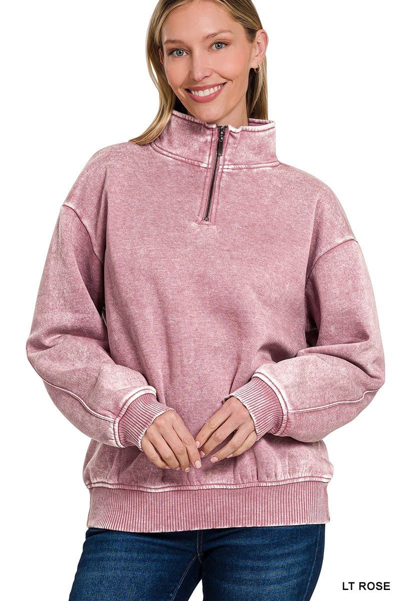 Lt Rose Acid Wash 1/4 Zip Pullover